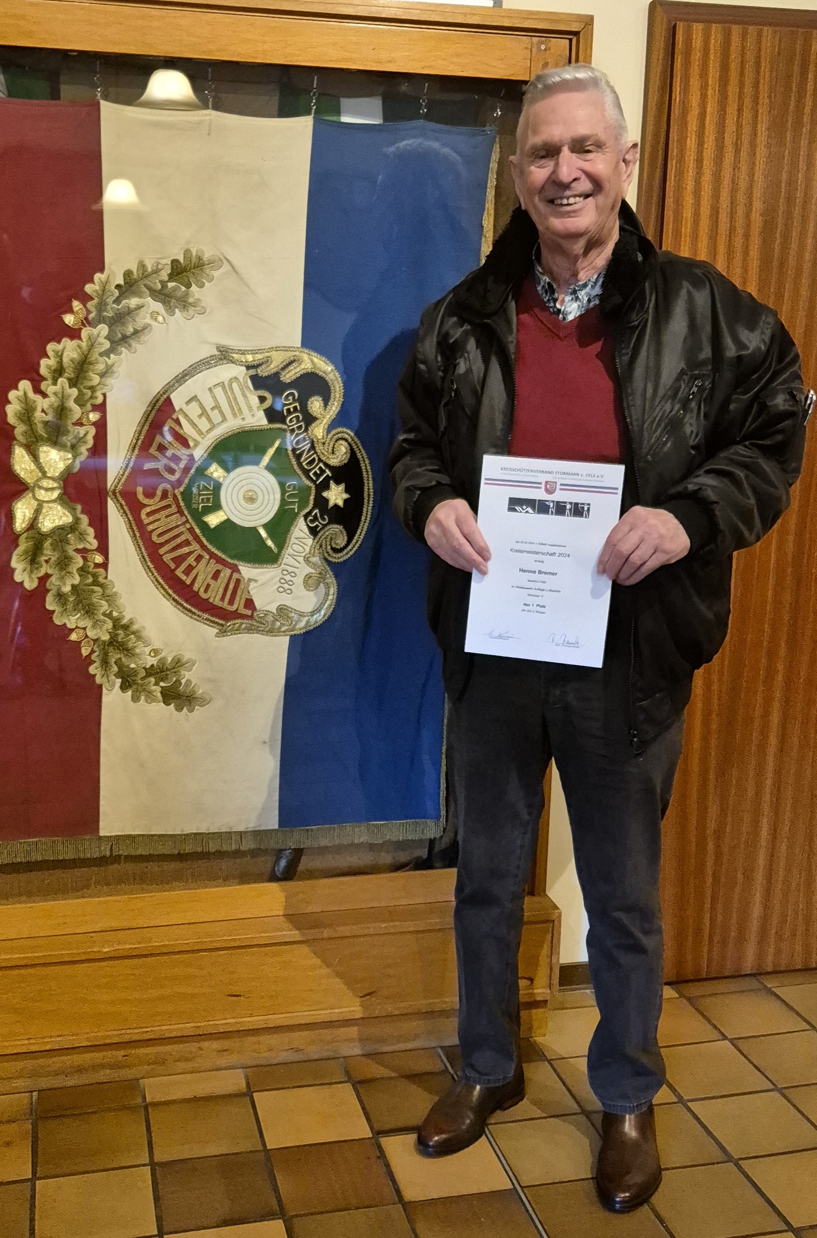 Ebenfalls belegte Henno Bremer bei den Senioren V Auflage Luftpistole den 1. Platz, und ist somit auch Kreismeister.